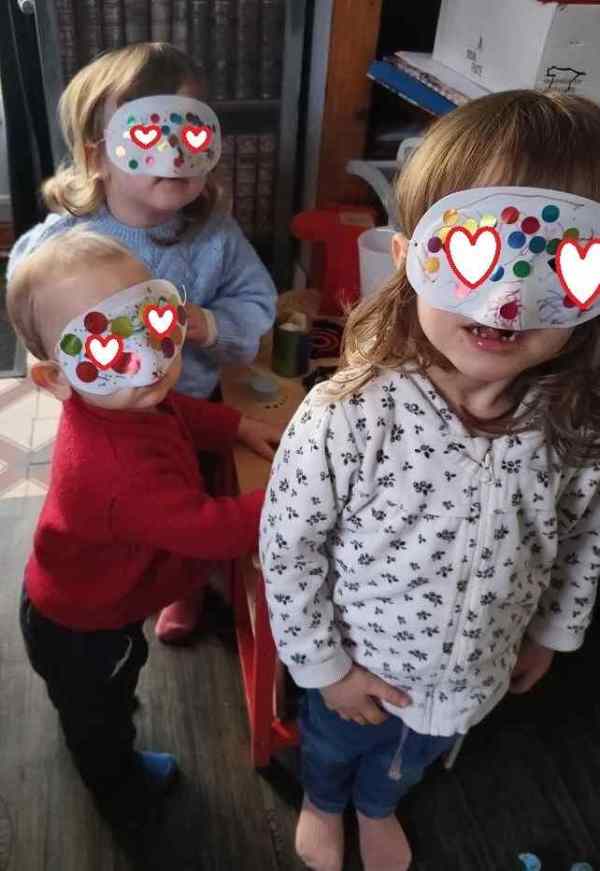 En début de semaine, Alma, Arthur et Elisa ont décoré des masques pour le carnaval. Le benjamin suit dans les activités (j'adapte simplement la taille des gommettes pour le moment mais bientôt ce ne sera plus nécessaire 👌😊) Un bon moment de partage et de concentration et des enfants tous fiers de leur œuvre !!