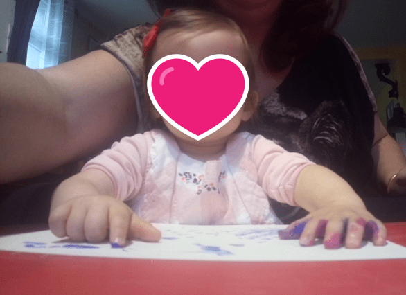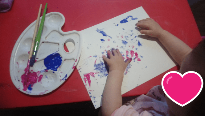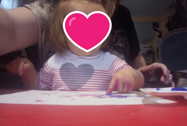Romy a commencé avec beaucoup d’enthousiasme, elle a trempé ses doigts dans la peinture. Elisabeth a été un peu plus timide mais s’est prise au jeu.