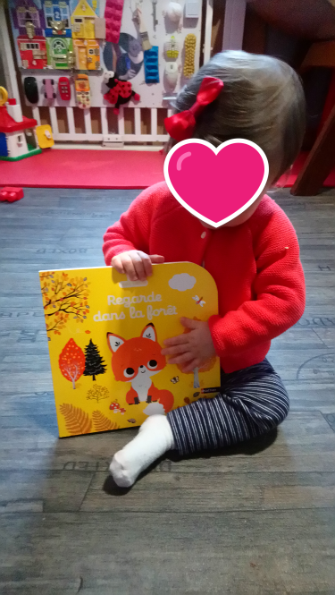 les filles peuvent bien le prendre en main et le feuillettent facilement . Je trouve les couleurs très douces, l’histoire est très simple et adapté aux enfants que j’accueille.