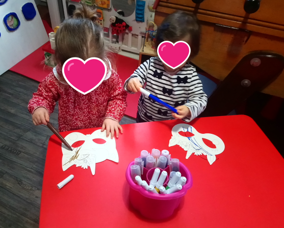 Elles ont colorié. C’est amusant d’être côte à côte , de choisir le crayon dans le pot, d’ouvrir le capuchon et de dessiner.