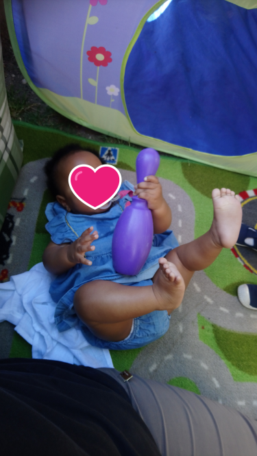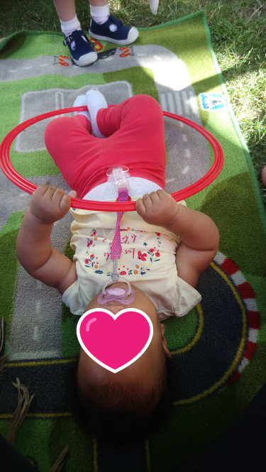 De plus pour Romane cela lui permet de développer sa préhension et la coordination main yeux.. et je trouve qu’elle progresse bien..