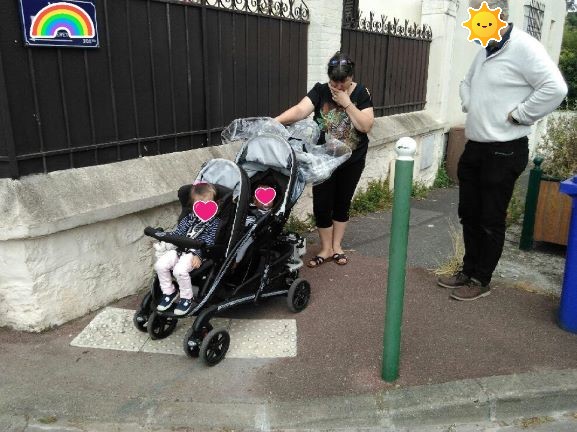 Ce fut le même effet j’ai juste appuyé sur le loquet et voilà ma limousine aussi légère qu’une plume et pourtant il y avait Elisabeth et Romane dedans … J’ai donc testé les montées autour de la maison avec plus ou moins de pente.. je suis impressionnée .. J’avais découvert cette invention à la foire de Paris il y a 2 ans. Je pensais que ce n’était pas pour une double mais plutôt réservé à des assistantes maternelles avec des poussettes triples ou quadruples.. mais le fait de l’avoir testé m’a vraiment fait réfléchir.
