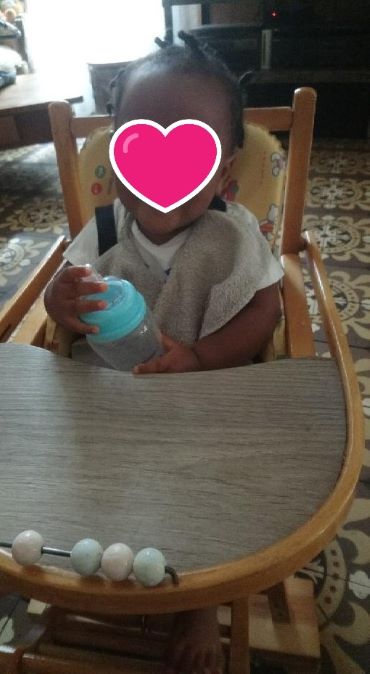 Comme elle a bien grandi, je peux lui proposer de déjeuner dans ma « mini chaise haute ». Résultat elle est contente!!!