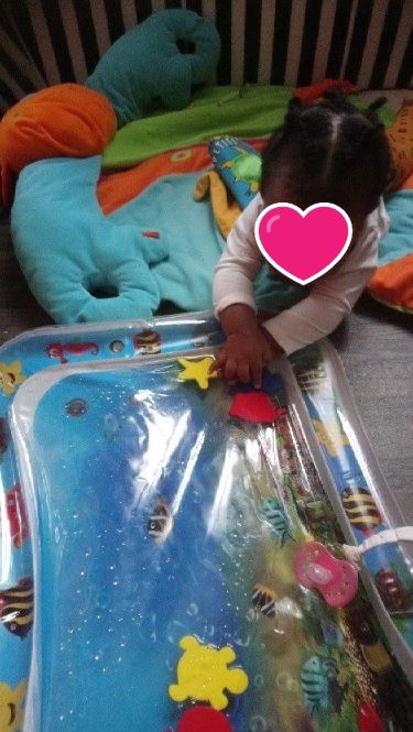 En cherchant des idées d’activités pour Elisabeth et Romy, l’année dernière j’avais découvert ce tapis d’eau Alors cette année c’est Elisabeth qui montre le principe à Romane. Vive l’imitation !!