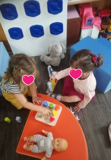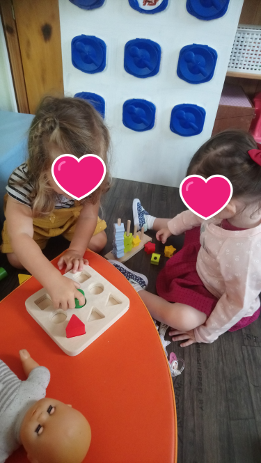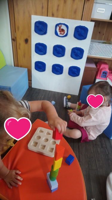 Ces demoiselles ont commencé la journée plutôt fatiguées.. Alors J’ai débuté par le rituel des comptines et la lecture. Pour continuer je leur ai proposé des jeux d’abaques et d’emporte pièce. Elles ont adoré.. Romane profitait d’un temps de repos pendant ce moment là.
