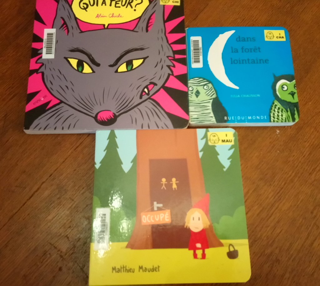 Pour varier les plaisirs, j’ai pu retourner à la bibliothèque. Je me suis volontiers perdue dans les rayons pour trouver de quoi régaler mon petit monde.. (Merci à ces dames de la médiathèques pour les conseils)