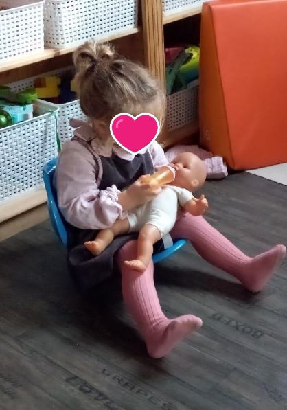 En y mettant les poupons dedans pour les bercer, Romane est intriguée