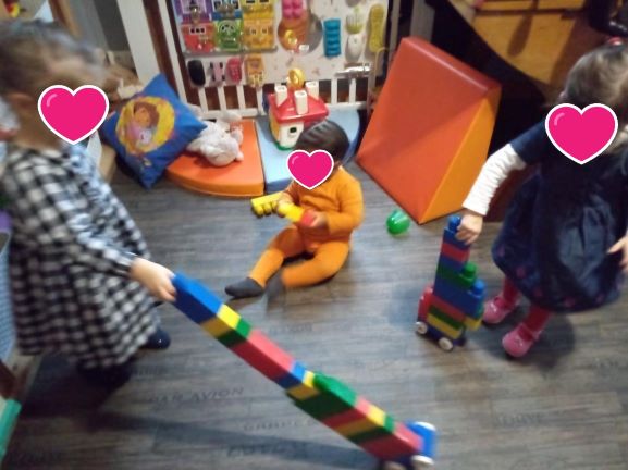 Romane a pu observer Elisabeth et Romy pour apprendre à les manipuler. Empiler, les faire rouler font partie de notre quotidien.