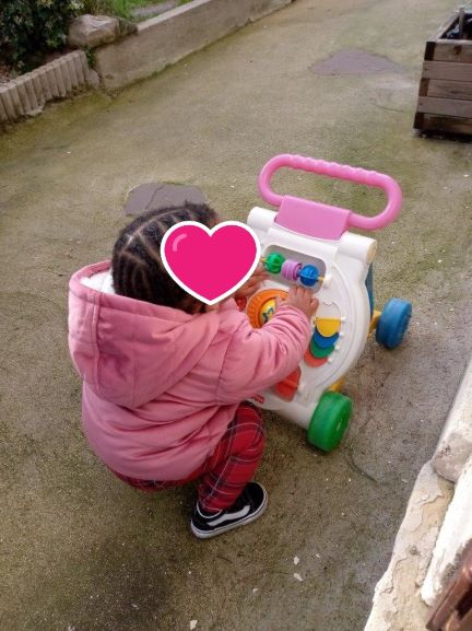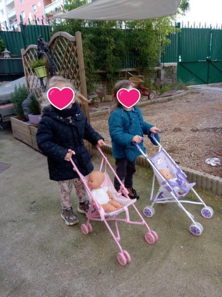 Le soleil a osé se montrer…du moins il n’a pas plus pendant quelques temps.(c’était juste avant l’épisode neigeux) . alors nous en profitons dès que cela est possible. J’ai sorti les poussettes, le trotteur. Les 3 demoiselles avec les poupons se sont amusées le long de l’allée. Que cela fait du bien…. ça sent le printemps (enfin presque..)