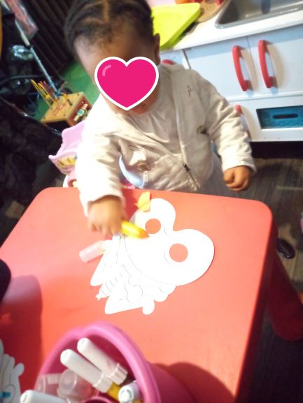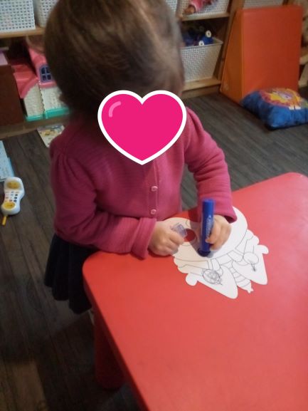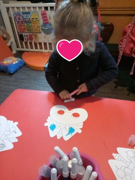 Au programme coloriage des masques pour toutes les 3 .. Chacune même Romane a décoré son masque ..