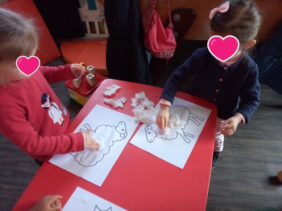 Nous continuons par du collage … Il faut bien couvrir ce petit mouton …