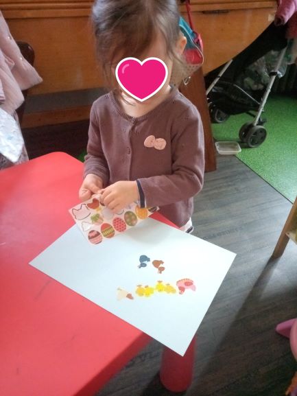 J’ai proposé aux demoiselles des gommettes mais attention pour les plus grandes il faut se concentrer.. il y a des espaces pour des rondes et des triangles, des grandes et des petites… ce fut un bon moment partagé avec tout ce petit monde.