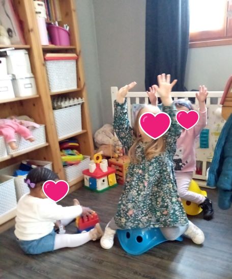 Les grandes ont poursuivi leurs investigations en y intégrant les poupons., en créant un train avec des wagons.