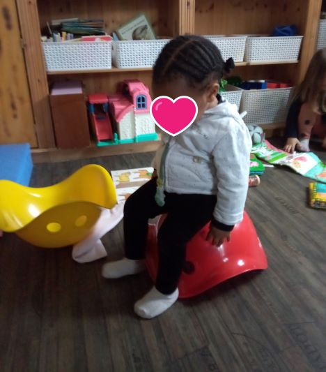 Cette fois Romane a pu s’en approcher un peu plus à son rythme. Elle a décidé d’explorer comment s’y assoir dedans, dessus..