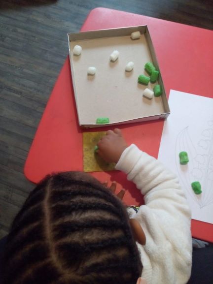 Elisabeth et Romy savent bien utiliser le playmais, elles se sont amusées à décorer en respectant bien les limites.