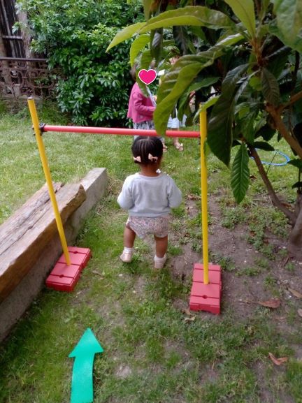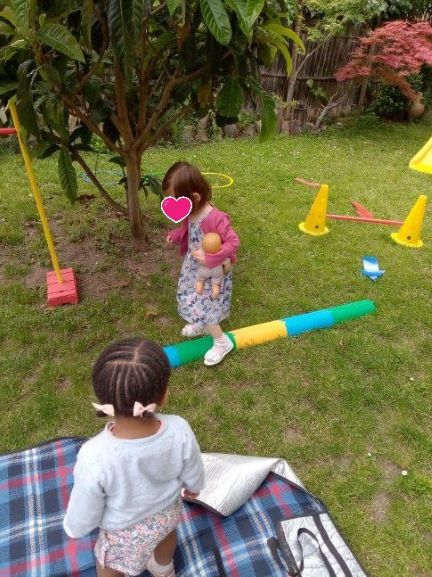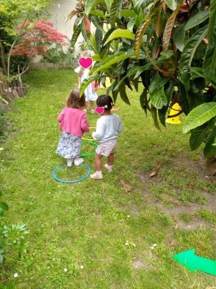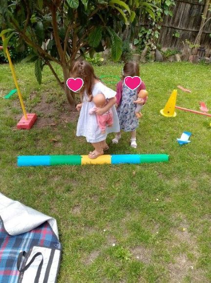 Ensuite des sauts dans les cerceaux. Romy et Elisabeth ont fait participer les poupons …