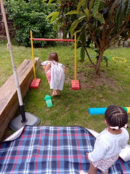 Chic il fait beau. Alors Tatie a installé des modules dans le jardin. Les 3 demoiselles ont apprécié