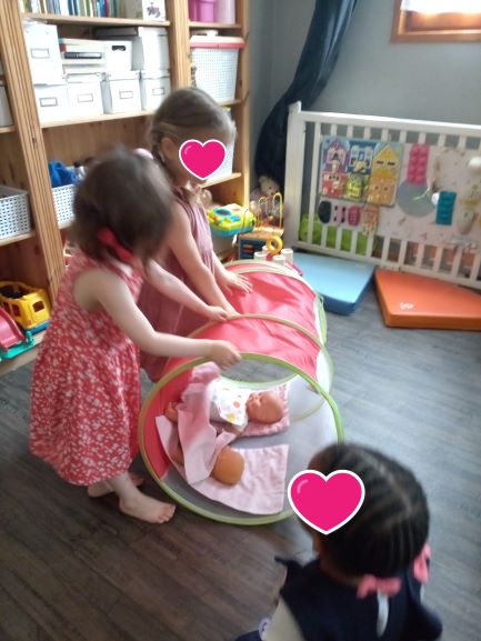 Et même les poupons y ont eu le droit… je vous laisse imaginer quand Romy et Elisabeth ont poussé pour faire rouler le tunnel sous le regard de Romane…. un grand fou rire !!!