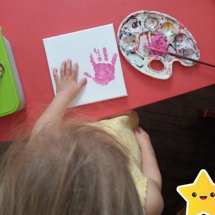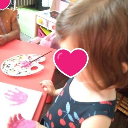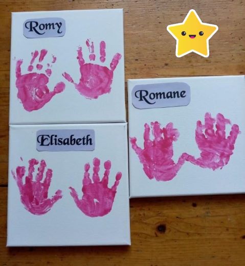 Nous avons continué avec la peinture J’ai aidé chacune à colorer ses mains. Elles les ont ensuite appliquées sur le cadre …