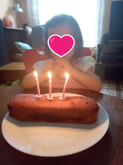 et enfin avec de vraies bougies à souffler ! et avec l’aide de Romy c’est très amusant !!