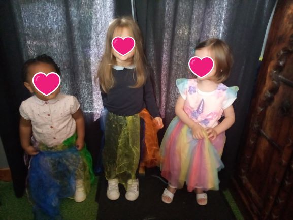 voici les 3 demoiselles en tenue de fête…( vive les foulards !!)