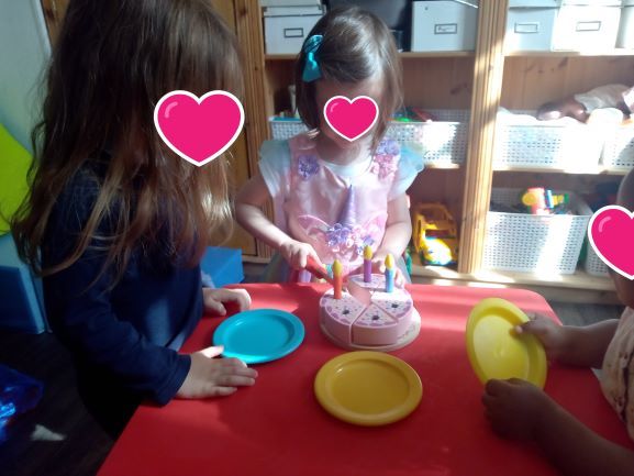 d’abord avec un gâteau à découper et à partager avec les copines. (et la musique qui va avec.. à ne surtout pas oublier)