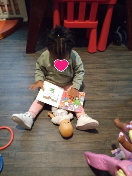 C’est le retour de Romane ce jour. Elle a très vite retrouvé ses repères. Après quelques câlins, elle a voulu lire des livres à bébé..