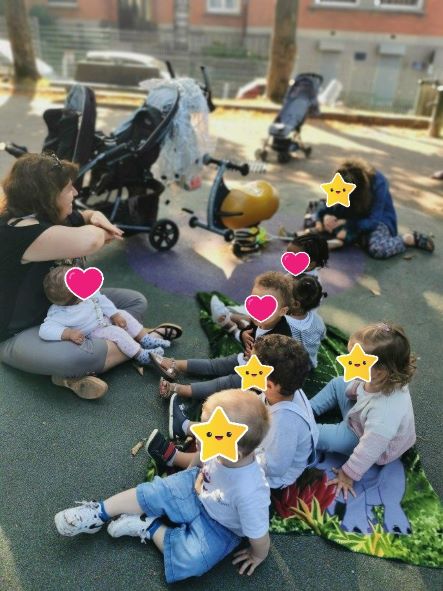 Ensuite nous nous sommes tous assis et c’est parti pour une animation chansons et comptines. Nous étions plusieurs assistantes maternelles. Eliot et sa maman se sont joints à nous pour l’escargot et le grand cerf..
