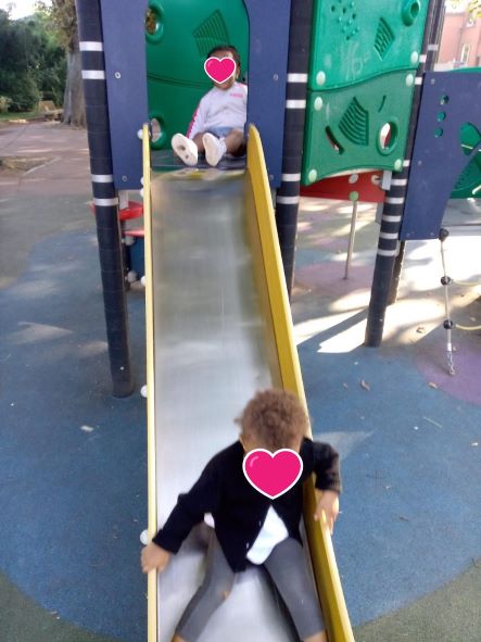 Nous profitons de ce bel été indien pour nous amuser au parc.