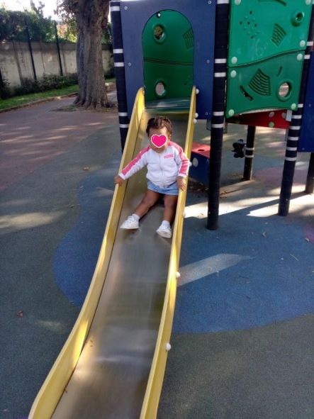 Thaissa admire les grandes courir et profiter des installations.