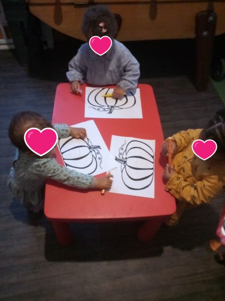 Thaissa s’est joint aux grandes pour décorer les citrouilles.. et il y a de quoi faire !!