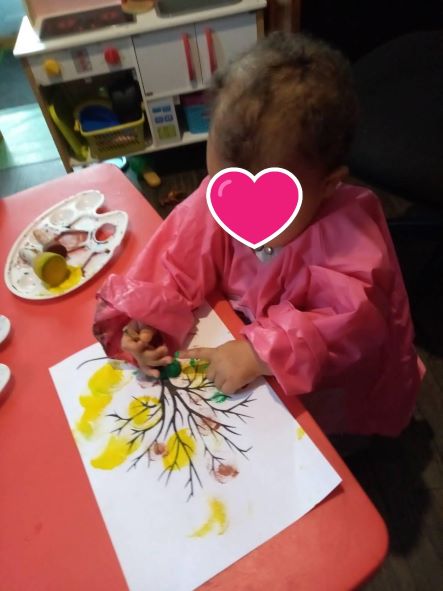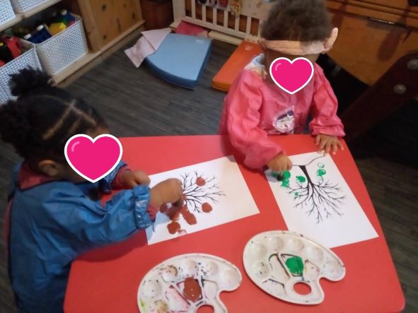 Ce matin nous terminons les activités d’automne par de la peinture pour le plus grand plaisir des 3 demoiselles.