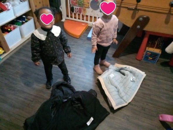 Mettre son manteau toute seule….une sacrée étape pour Taila et Romane