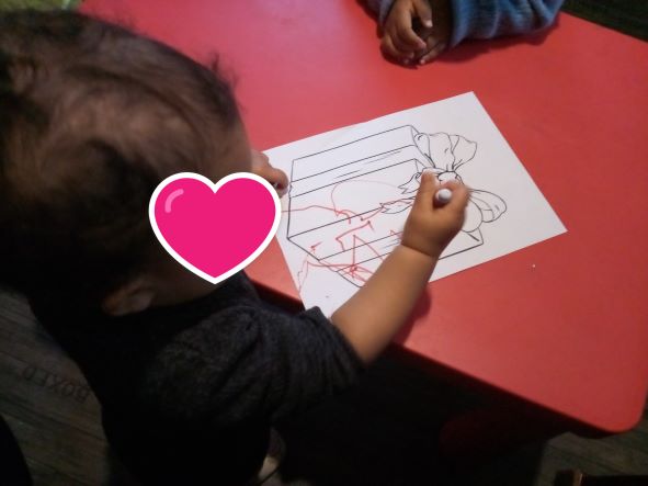 Taila et Romane se sont amusées. Thaissa a utilisé les feutres pour colorier le cadeau.
