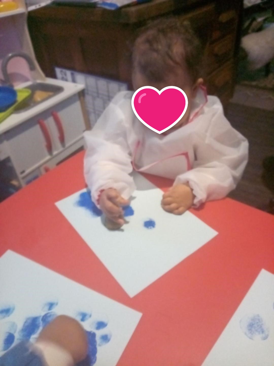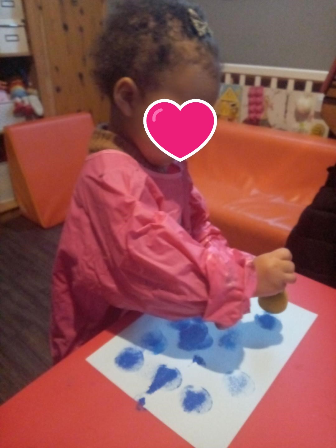 On a continué avec la peinture …avec les tampons pour faire un joli fond bleu