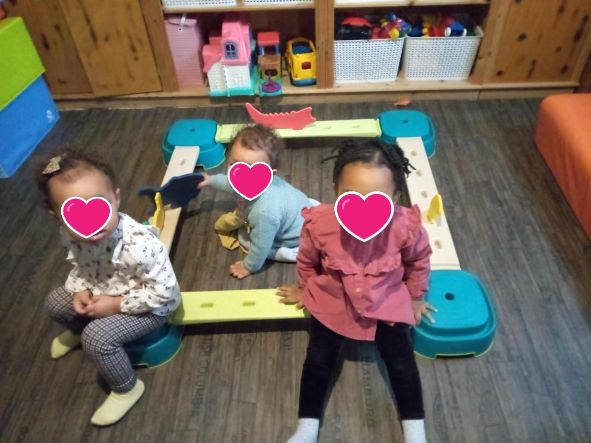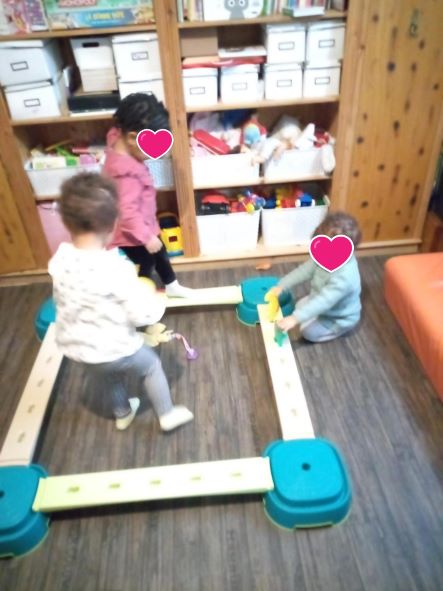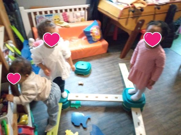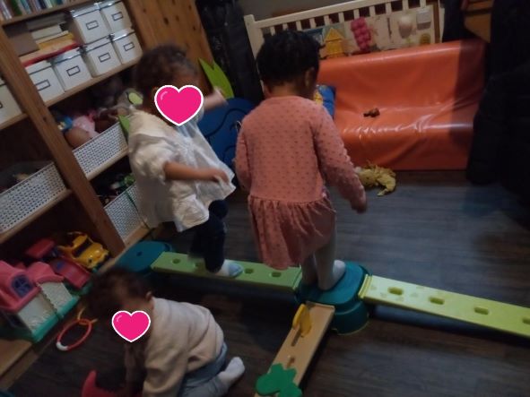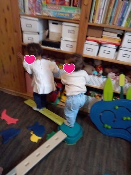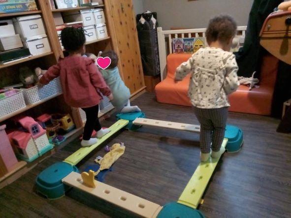 J’ai ressorti le parcours de motricité . Romane s’en souvenait un peu mais c’est une belle découverte Tailla et Thaissa.