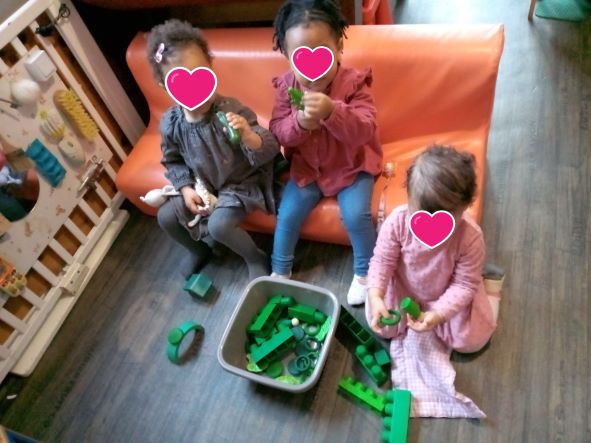 je fais le tour des jouets pour regrouper tout ce qui se rapporte au vert.