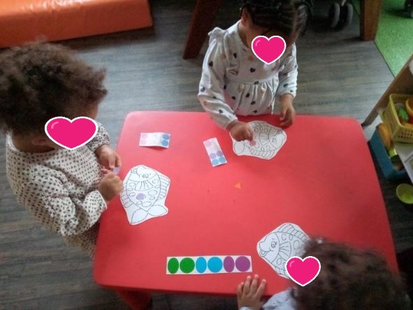 Cette semaine Taila, Thaissa et Romane ont travaillé sur un joli tableau. (ce sont des activités simples qui plaisent aux enfants, je fais les découpages)