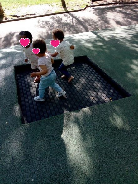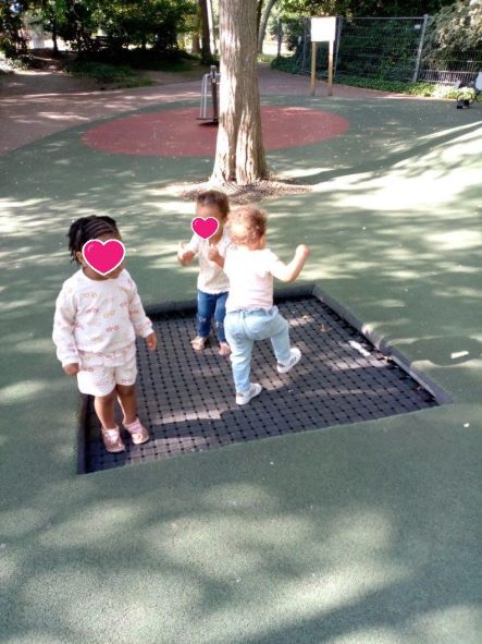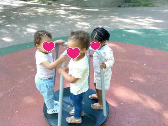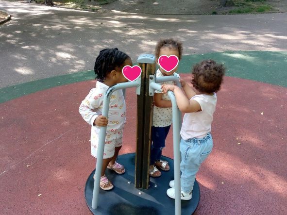 Le tourniquet : surprise ça fait comme un petit manège , on monte toutes les 3 et tatie fait tourner doucement.