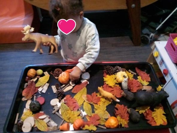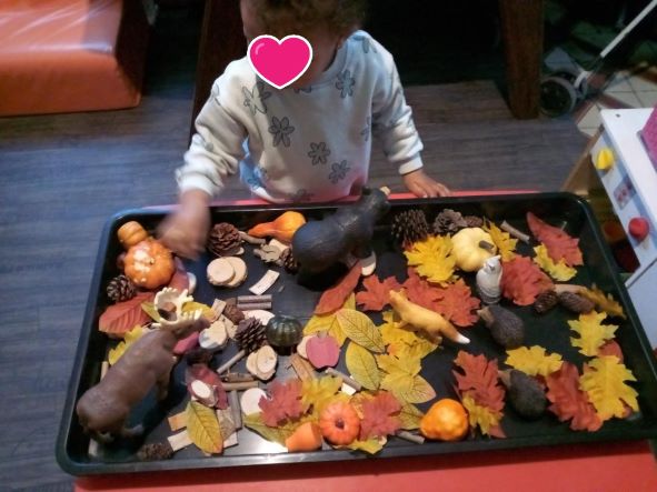 j’avais commencé avec ce que j’avais sous la main et depuis à force de voir les images des bacs sensoriels sur internet. Je me suis lancée…. le plateau vient de chez https://www.hoptoys.fr/sensorialite/grand-bac-exploration-rectangulaire-p-14210.html?search_query=bac+sensoriel&results=596 Il se positionne parfaitement sur la table pour être à hauteur.