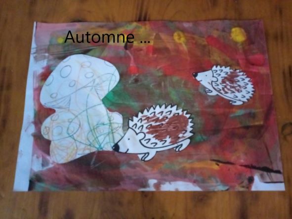 Thaissa a pu créer son tableau entre la peinture, les hérissons (et la fourchette) et des coloriages de champignons