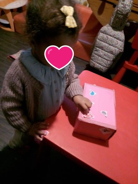 à défaut de la boite, Laura une des mamans avait proposé à sa fille de vider sa colère dans le lavabo d’un restaurant car ils étaient de sortie…et ça a fonctionné !! je suis très contente car je donne des idées mais ce sont les enfants et les parents qui se les approprient et les utilisent.