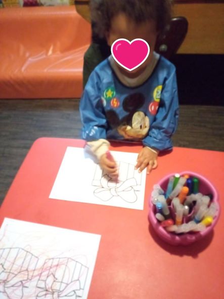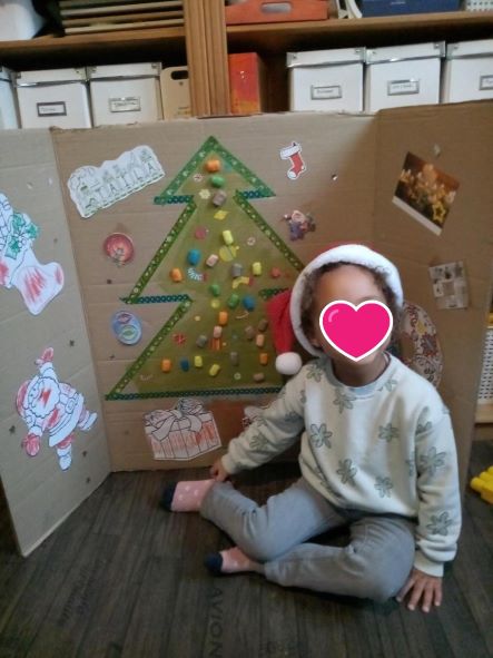 Quand les filles sont arrivées, chacune à leur tour a pu peindre l’arbre. Puis c’est la séance coloriage pour les cadeaux, le père noel et la chaussette. Taila nous a rejoint pour les vacances de Noël.