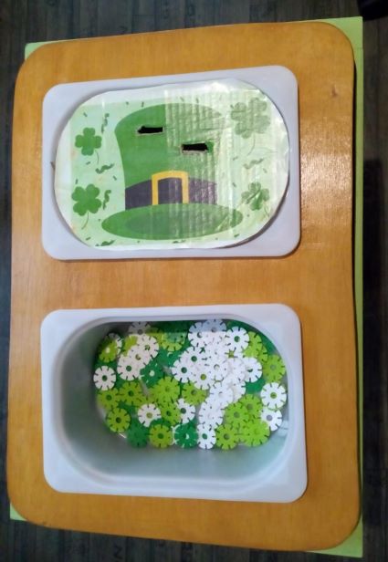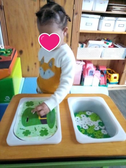Il y a eu aussi le collage du playmais sur le tréfle et les coloriages.
