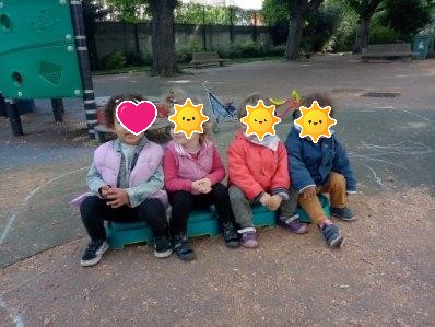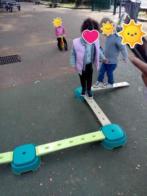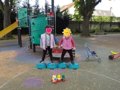 Ce matin nous sommes organisées pour créer un petit parcours de motricité au parc pour les enfants.