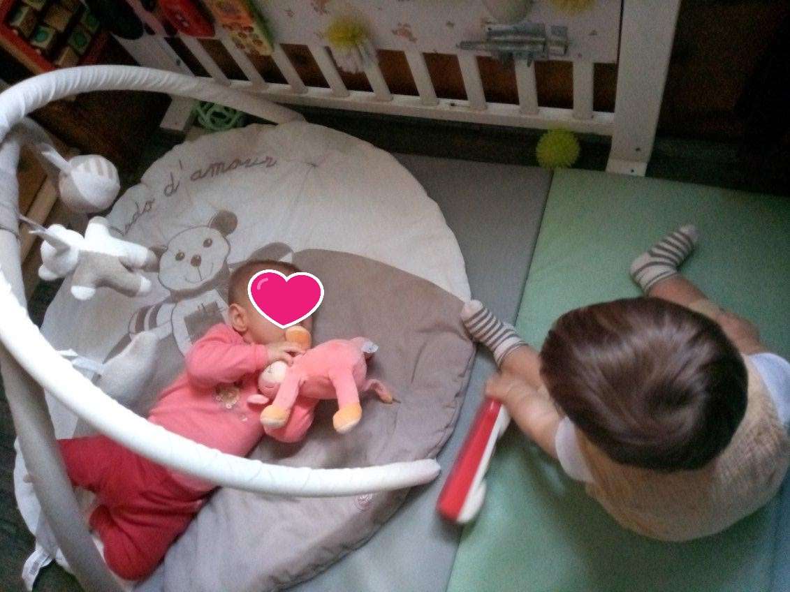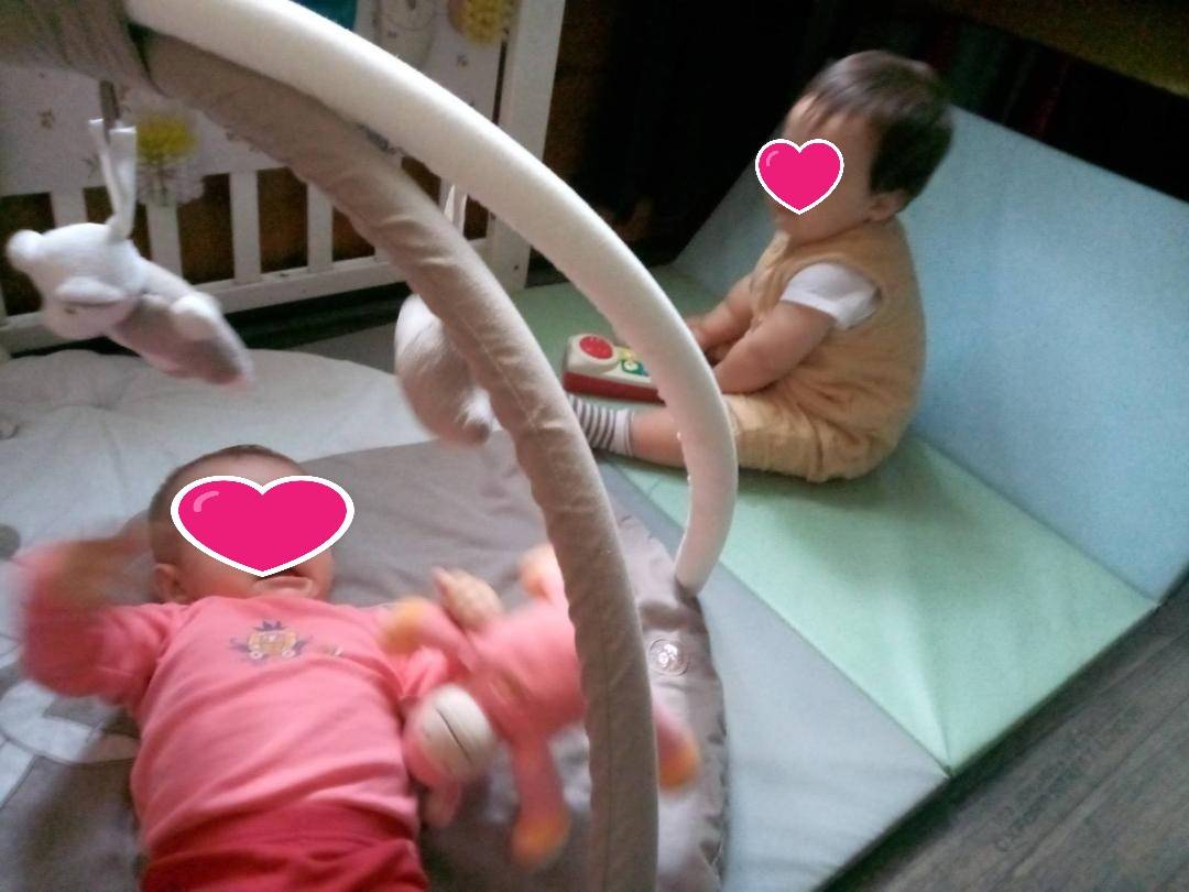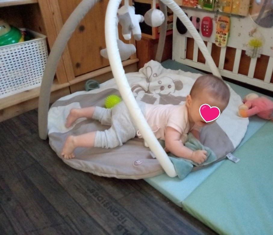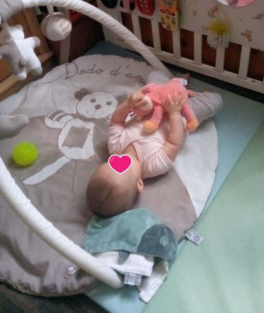 Cela fait quelques temps que demoiselle Alma apprécie le tapis d’éveil.