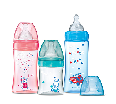 - les biberons se modernisent :anti coliques à tétine plate, en silicone extra-souple, qui reproduit la forme aplatie du sein pendant la tétée pour favoriser le passage du sein au biberon. Le col large permet un remplissage et un nettoyage facilités. source https://www.dodie.fr/biberons