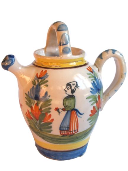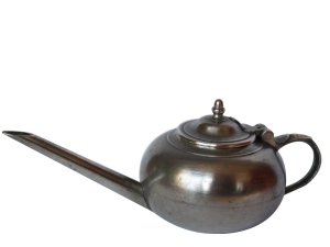 En faïence « Pod bronnek ». Ce vase est pourvu d’une ouverture supérieure à petit goulot droit, d’une anse latérale et d’un bec en forme de mamelon. (source http://www.histoire-du-biberon.com/biberons/biberons2.htm)