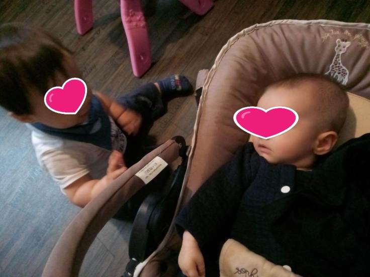 Et voilà le réveil de Lucas… jeu et gouter … puis biberon selon la faim d ‘Alma.