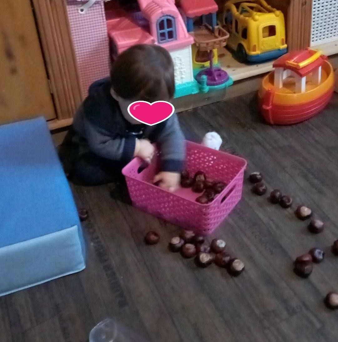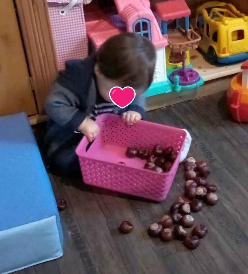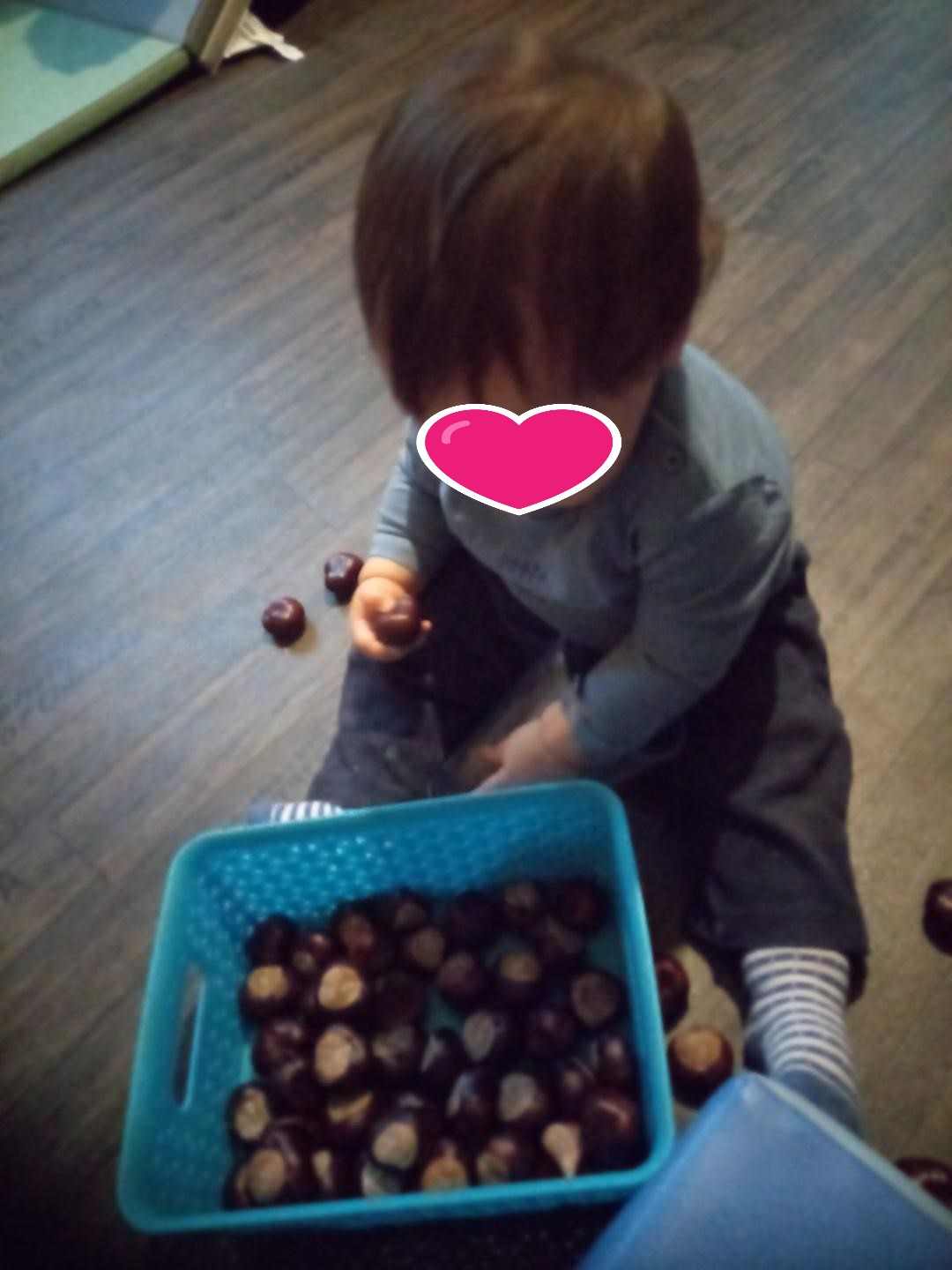 Parfois il faut rester simple. J’ai rempli un bac de marrons (merci Tristan, Eliott et Valentine pour les avoir ramassés sur votre chemin